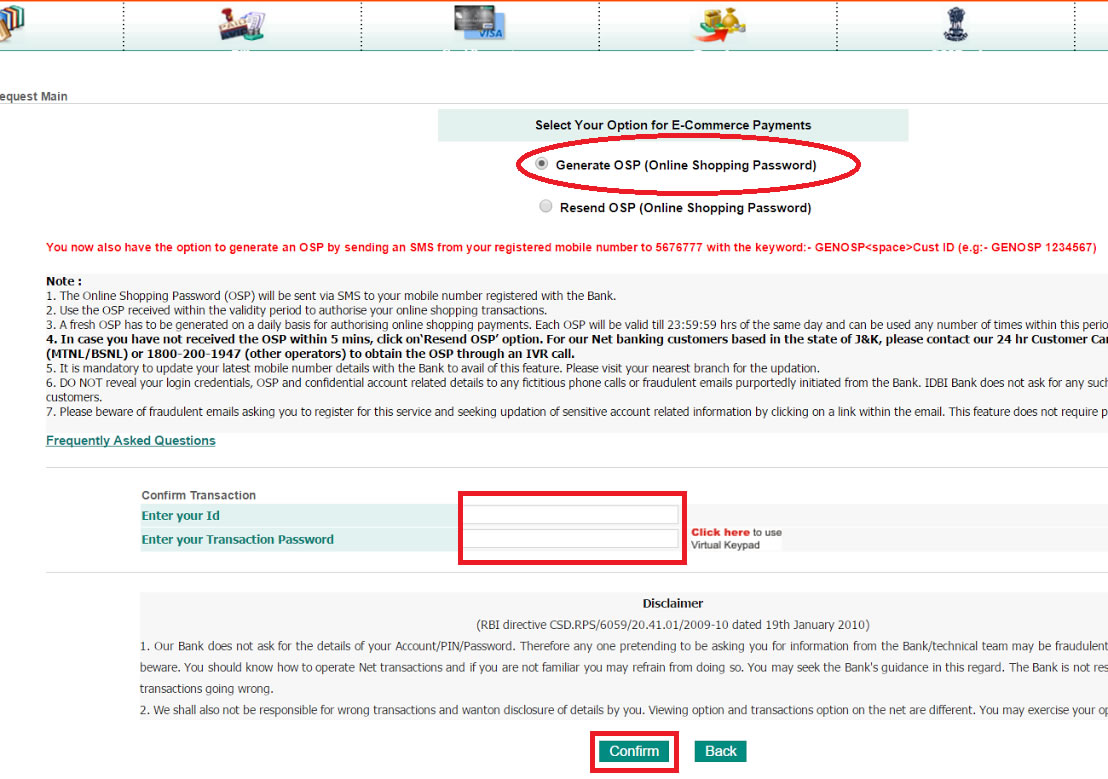 How To Generate OSP In IDBI Bank