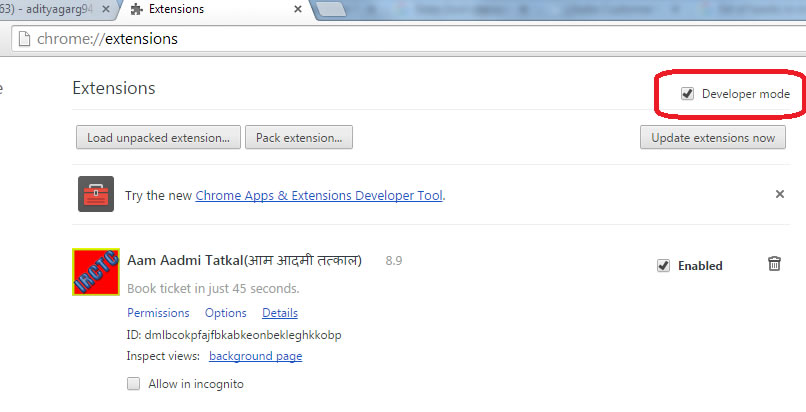 सबसे पहले डेवलपर मोड पर टिक करके इसे ओन करें एक्सटेंशन अद्यतन करने के लिए।